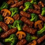 This Beef, Broccoli & Mushroom Stir-Fry with Garlic Ginger Sauce mixes tender beef, bright broccoli, and savory mushrooms in a simple sauce. It cooks fast and fills the kitchen with a nice aroma.