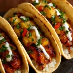 - Assemble the tacos with sliced chicken, pineapple salsa, avocado, and drizzle with the crema.