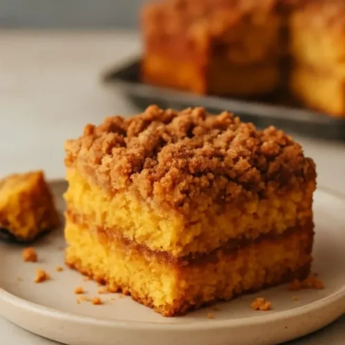 Serving pumpkin coffee cake is simple. Cut it into squares and place it on a plate. You can dust it with powdered sugar for a sweet touch or serve it plain. It pairs wonderfully with: